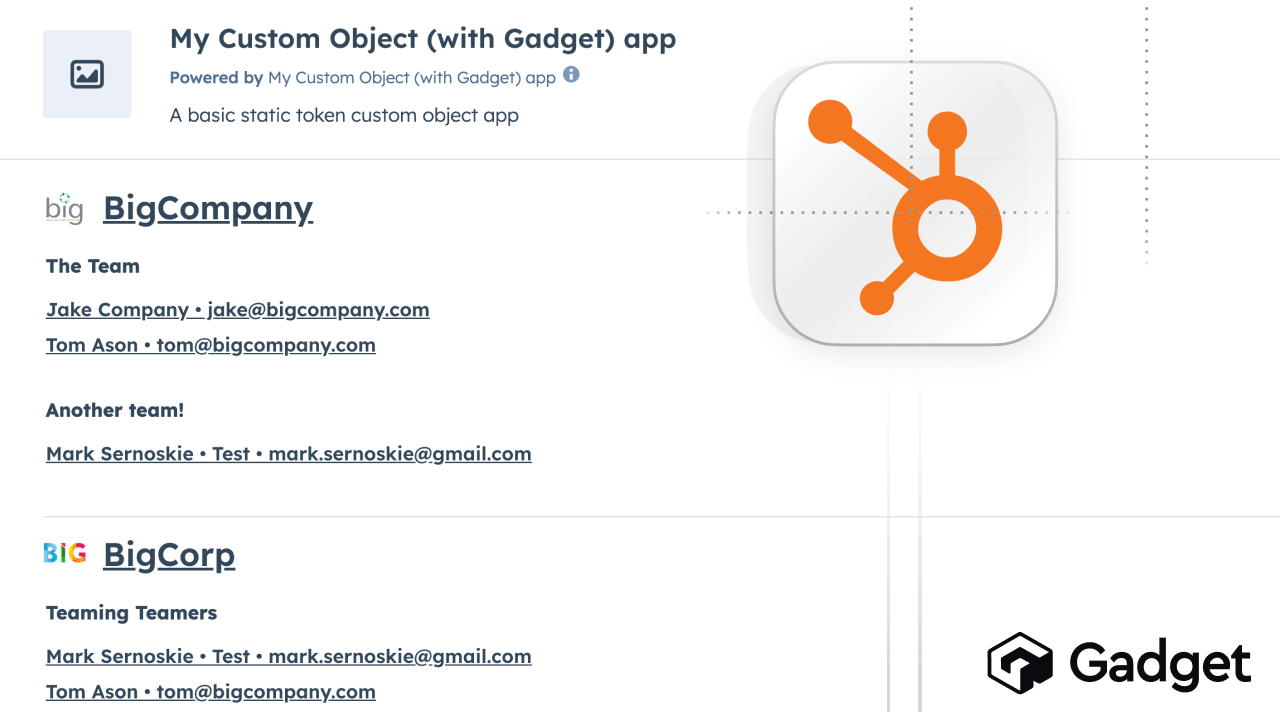 Extend HubSpot with custom objects powered by Gadget’s managed infrastructure, no Hubspot plan upgrade required!